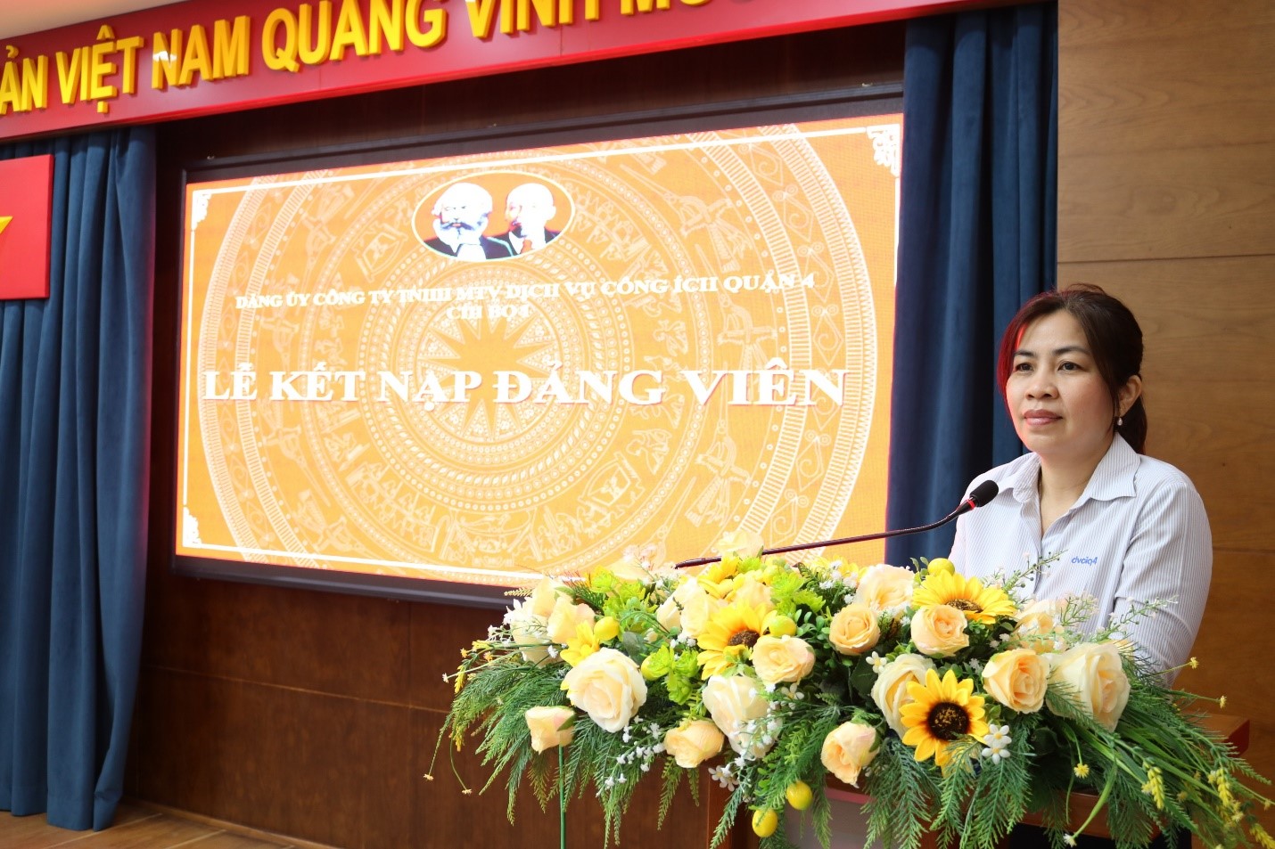 Phát biểu chỉ đạo tại buổi lễ, đồng chí Lê Thị Ái Thu – Phó Bí thư Đảng ủy Công ty chúc mừng, biểu dương kết quả thực hiện công tác phát triển đảng của Chi bộ 1 và BCH Đoàn TNCS Hồ Chí Minh Công ty; đồng thời đề nghị đồng chí Phạm Thị Kiều Trinh tiếp tục phát huy vai trò trách nhiệm, gương mẫu trong việc tu dưỡng, rèn luyện, phấn đấu, học tập, nâng cao nhận thức chính trị và năng lực chuyên môn, hoàn thành xuất sắc nhiệm vụ, đặc biệt là thực hiện tốt quy định về những điều Đảng viên không được làm; xứng đáng là người đảng viên gương mẫu, là tấm gương sáng cho đoàn viên thanh niên Công ty. Đảng ủy Công ty đề nghị tập thể Chi bộ 1 tiếp tục quan tâm công tác giáo dục, giúp đỡ công nhân lao động thấy rõ hơn trách nhiệm của mình, phấn đấu, nổ lực hoàn thành tốt nhiệm vụ, tích cực tham gia các hoạt động phong trào, từ đó phát hiện bồi dưỡng thêm nhiều nhân tố điển hình tạo nguồn phát triển Đảng cho Đảng bộ Công ty.