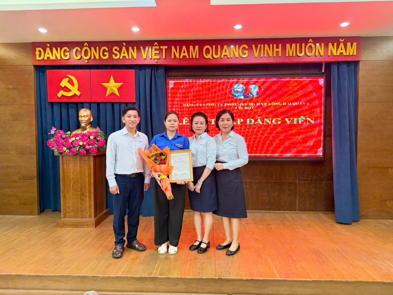 Tích cực thi đua lập thành tích chào mừng Đại hội đại biểu toàn quốc lần thứ XIV của Đảng với phương châm Đoàn kết - Dân chủ - Kỷ cương - Đột phá - Phát triển; Chi bộ 1 long trọng tổ chức lễ kết nạp đảng viên Phạm Thị Kiều Trinh là đoàn viên ưu tú Chi đoàn 01/Công nhân Đội vệ sinh với không khí trang trọng, đúng trình tự, thủ tục của Điều lệ Đảng.