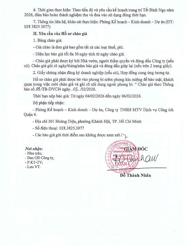 THÔNG BÁO CHÀO GIÁ V/v cung cấp cây mai vàng hạng mục trang trí cây xanh – hoa kiểng phục vụ Tết Bính Ngọ năm 2026
