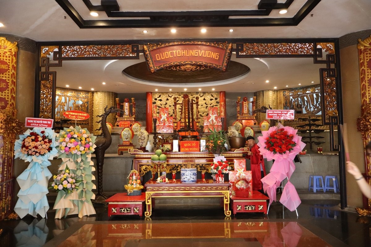 Bàn thờ Quốc Tổ Hùng Vương trang nghiêm tại chính điện Đoàn dâng nén hương tưởng nhớ các Vua Hùng Đoàn viên thanh niên Công ty trang nghiêm trong lễ dâng hương