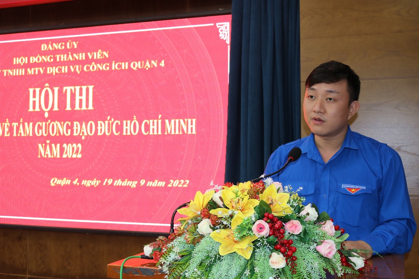 Tiếp tục thực hiện Kết luận số 01-KL/TW ngày 18/5/2021 của Bộ Chính trị về tiếp tục thực hiện Chỉ thị số 05-CT/TW ngày 15/5/2016 của Bộ Chính trị gắn với thực hiện Chủ đề năm 2022: “Học tập và làm theo tư tưởng, đạo đức, phong cách Hồ Chí Minh về xây dựng đội ngũ cán bộ, đảng viên tiên phong, gương mẫu, có đạo đức cách mạng trong sáng, đáp ứng yêu cầu nhiệm vụ xây dựng và phát triển Thành phố Hồ Chí Minh”; Sáng ngày 19/9/2022, tại Hội trường Công ty TNHH Một thành viên Dịch vụ Công ích Quận 4, hội thi: “Kể chuyện về tấm gương đạo đức Hồ Chí Minh” đã được khai mạc với sự tham dự của 13 thí sinh cùng với các đồng chí là Ban Chấp hành Đảng bộ, Ban Giám đốc, cán bộ chủ chốt và toàn thể đảng viên, đoàn viên, nhân viên văn phòng Công ty.