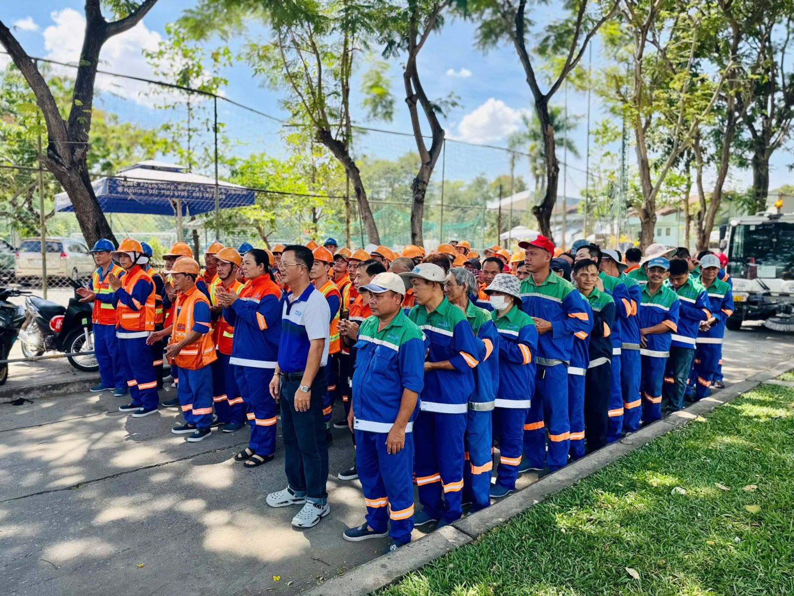 Đến tham dự và động viên NLĐ tham gia ra quân dọn dẹp vệ sinh đường phố, chào Xuân Bính Ngọ 2026 có các đồng chí lãnh đạo. Đ/c Quánh Tú Anh: Đảng uỷ viên, Trưởng Phòng Kinh tế - Hạ tầng và đô thị Phường Xóm Chiếu; Đ/c Thái Trần Duy: Bí thư Đảng uỷ, Chủ tịch HĐTV Công ty; cùng các đồng chí trong Ban giám đốc, Trưởng Phòng TC-HC, Phòng DVCI&MT. Sự quan tâm và đồng hành của quý lãnh đạo chính là nguồn động viên to lớn, góp phần tiếp thêm khí thế để hoạt động diễn ra trang trọng, hiệu quả và đầy ý nghĩa.