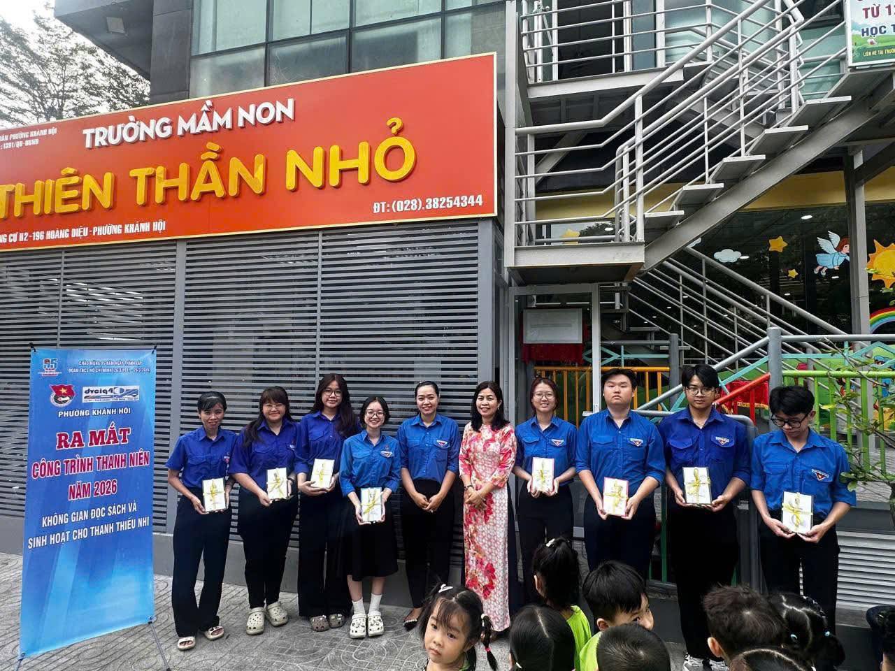 Bên cạnh đó, Đoàn Công ty đã phối hợp cùng Đoàn Phường Khánh Hội thực hiện Công trình thanh niên năm 2026 với nội dung cải tạo xây dựng mới “Không gian đọc sách và sinh hoạt thanh thiếu nhi” tại chung cư H2 Phường Khánh Hội với kinh phí thực hiện là 80 triệu đồng, đây hoạt động giàu ý nghĩa giáo dục, phát triển văn hoá đọc sách trong thanh thiếu nhi… nhằm giúp các bạn nuôi dưỡng ước mơ, lý tưởng và phấn đấu cho tương lai.