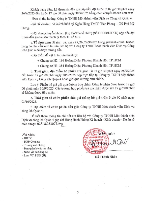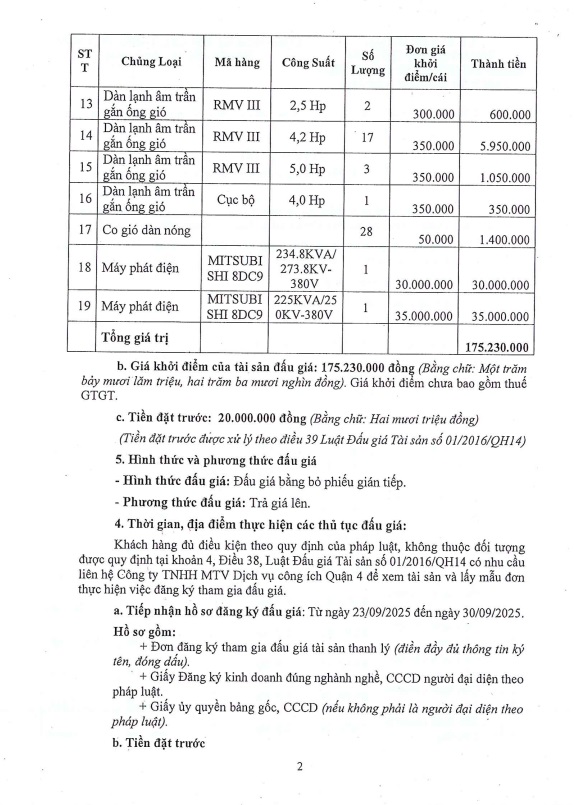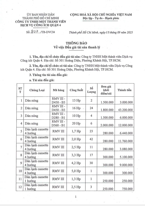 THÔNG BÁO V/v Đấu giá tài sản thanh lý